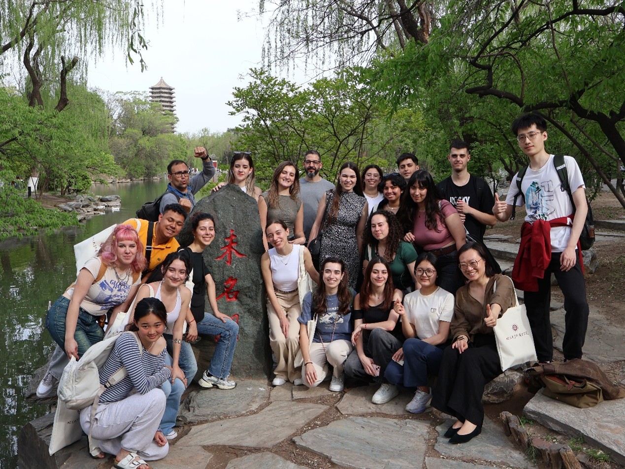 双方学生在未名湖前合影