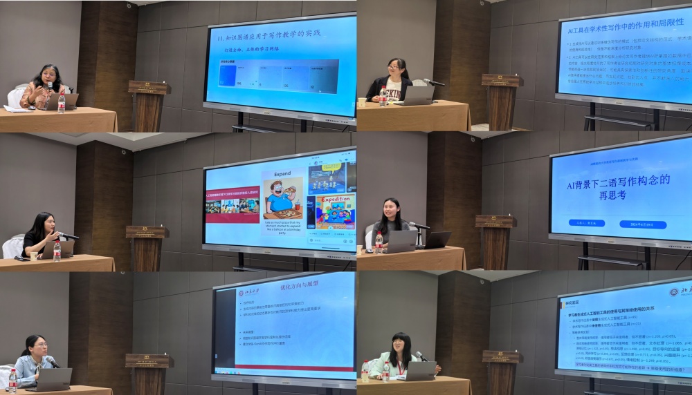 分论坛二上,董欣老师围绕“夯实基础、促进思考——基于知识图谱建设的大学英语写作教学”这一主题对《实用基础英语写作》课程中AI赋能写作教学和知识图谱的实践进行了分享,强调AI赋能的写作教学不仅强调概念的解释和联结,也强调思维过程,还将思维方式的训练与写作方法紧密结合。方晏老师随后依托《学术英语写作》课程的教学改革实践,结合“个性化指导、实时性反馈、自主性训练、互动性评价”四位一体的课程体系构建和案例分析,为构建人机协同的智慧英语教育体系提供了新视角。之后,熊笠地老师对AI背景下二语议论文写作构念进行了再思考,对二语教师面临的如何有效评估学生写作的严峻挑战以及可能的对策进行了深入交流。