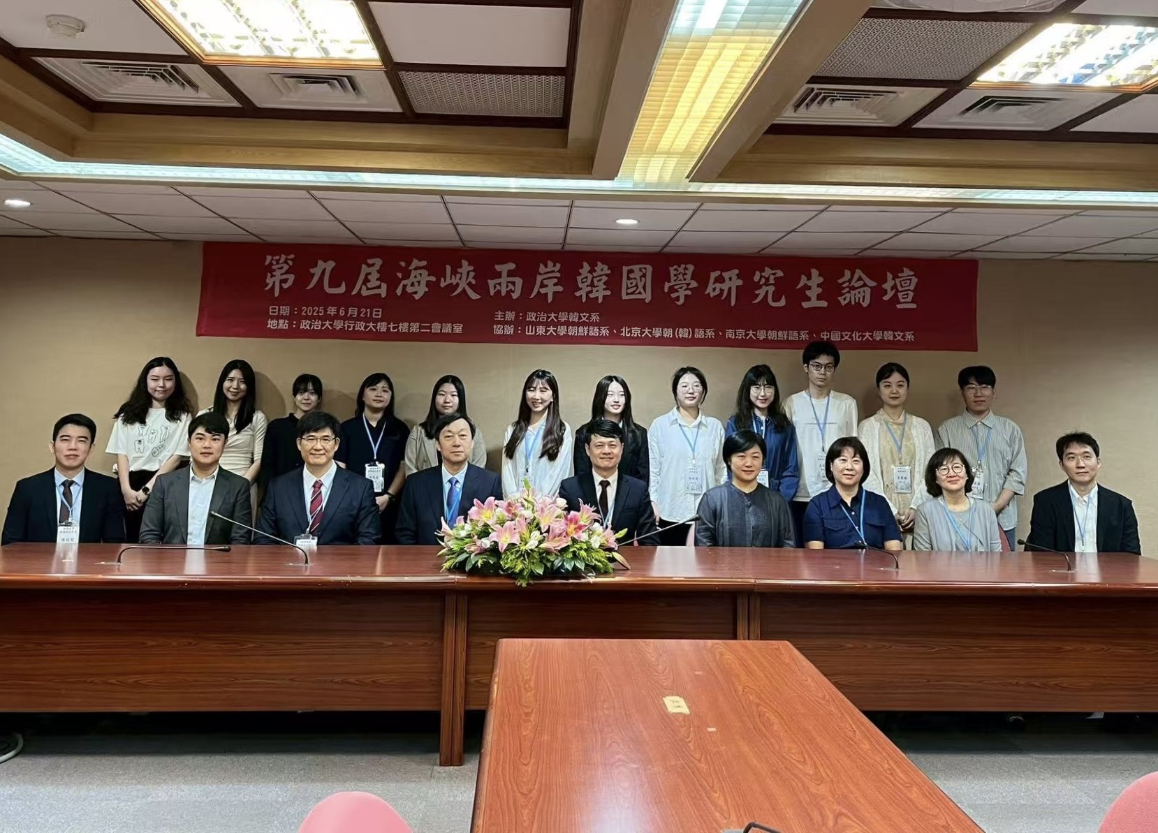 2025年6月21日,“第九届海峡两岸韩国学研究生论坛”在台湾政治大学行政大楼7楼第二会议室举行。来自北京大学、台湾政治大学、山东大学、南京大学、台湾中国文化大学的三十余名专家学者与研究生参会。“海峡两岸韩国学研究生论坛”由开云官方网页版朝鲜(韩国)语言文化系、山东大学韩国学院、台湾政治大学外国语文学院韩国语文学系于2014年联合发起,2017年南京大学开云官方网页版朝鲜语系加入。随着今年台湾中国文化大学国际暨外语学院韩国语文学系的加入,论坛已扩展为五校论坛。