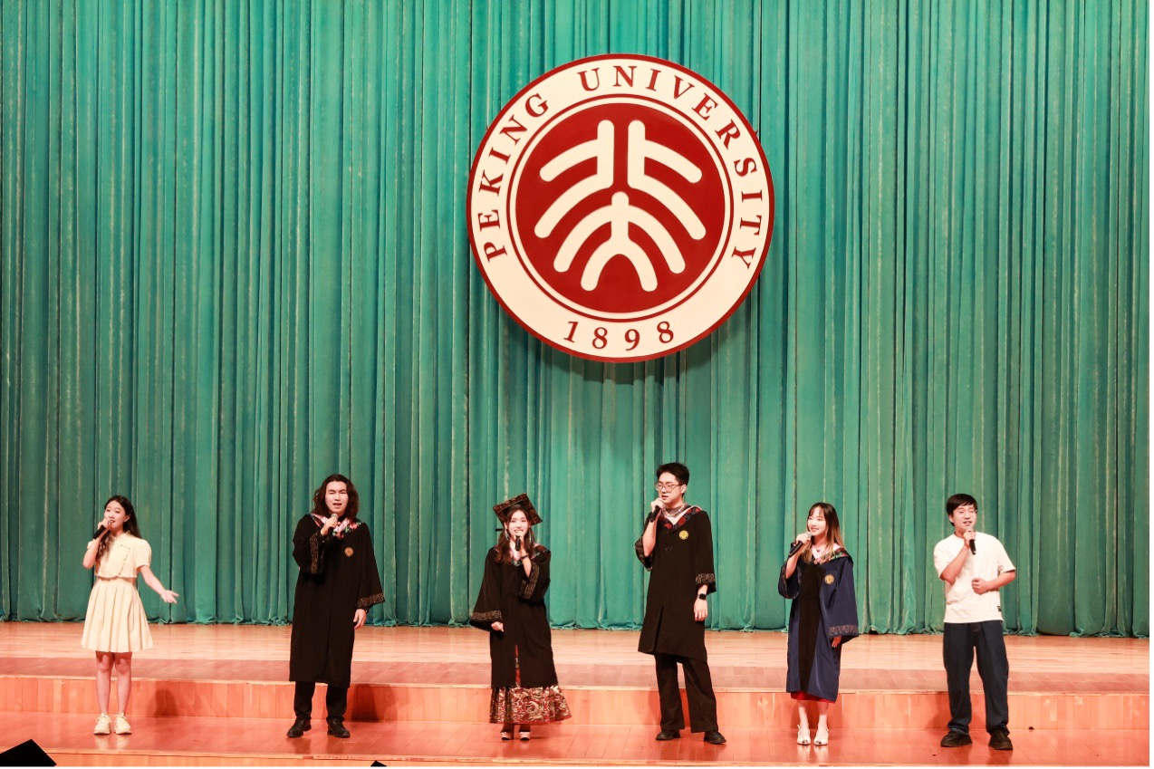 典礼行将结束,全体师生合唱《燕园情》。“燕园情,千千结”,联结的是所有外院人、所有北大人的心,不变的是真诚的师生情、同学情。“眼底未名水,胸中黄河月”,外院学子将带着北大外院人的初心使命,奔赴天涯海角。