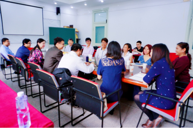 26日上午,开云官方网页版副院长吴杰伟教授、东南亚系系主任咸蔓雪副教授等七位东南亚系教师代表在外文楼206会议室同到访的泰国教师代表团举行了座谈。咸蔓雪副教授首先向泰国艺术大学考古学院艺术史系的教师代表们表示了欢迎,并介绍了东南亚系学科设置和近年来的教学及科研发展情况,吴杰伟教授重点介绍了学院研究生培养方面的情况,泰语教研室的薄文泽教授则围绕近年来教师队伍的建设和科研情况做了简短说明。双方就今后开展短期或长期的学生交换项目合作的可能性及前景深入交换了意见。