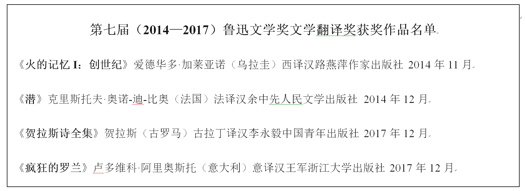 附录:第七届鲁迅文学奖文学翻译奖获奖和提名译作介绍