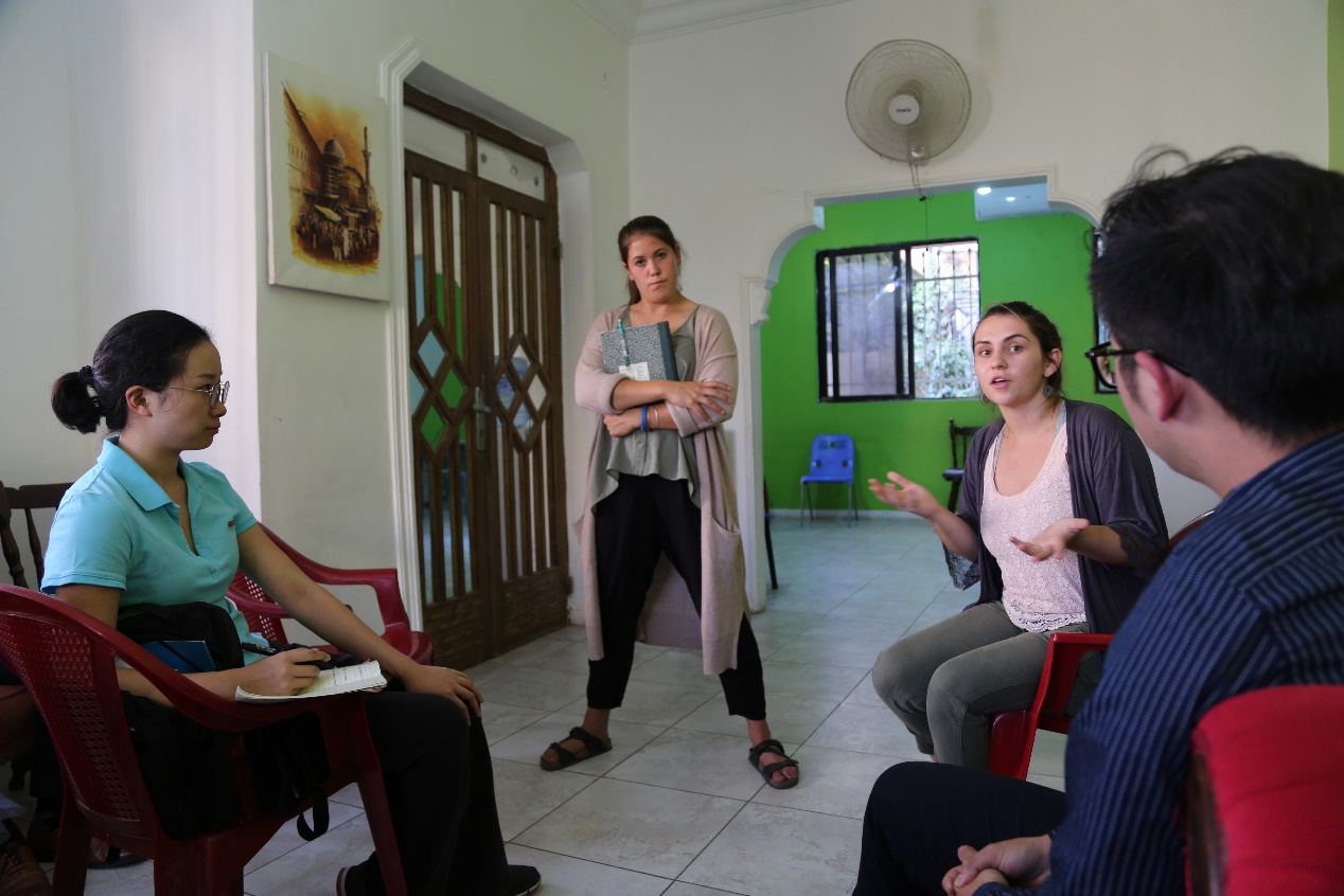 代表团随后来到了位于东安曼的美国非政府救援组织Collateral Repair Project (CPR)。CRP为难民提供了多种类型的社区项目,例如帮助女性塑造领导力,组织女性制作手工艺品等。去年代表团曾在该组织的带领下走访安曼一处难民家庭,一年后的今天,难民生活更加艰难,工作机会减少和物价上涨一道,使得难民出逃时所携带的资产所剩无几,他们的生活用捉襟见肘形容亦不为过。