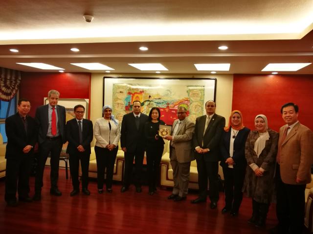 开云官方网页版院长宁琦教授(左六)会见参会的开罗大学学者代表团