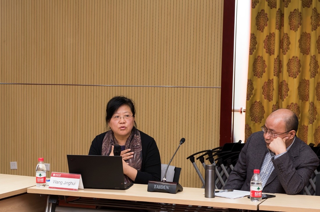 28日上午,第四场讲座主题为“生态学与生命写作:跨国与跨文化视角”,由郑春光老师担任主持。霍农教授首先阐释了生态学与生命写作、自然与文化的内在联系,随后以梭罗的《瓦尔登湖》、陶渊明的诗歌、中国园林艺术为例,分析了东西文化传统中返归自然的思想意识与创作实践。他进一步以特丽•坦皮斯特•威廉斯和中国作家为例,分析了生命书写暗含着对自然的保护与对生命创伤的治愈。最后,他通过介绍青藏高原上的生命写作,分析中国文化中天人合一的生态意识,并与加拿大日裔生物学家大卫•铃木的生命写作对比,说明人与自然和谐理念具有跨越不同民族地域的内在一致性。刘意青教授评议了这场讲座。她首先请霍农教授进一步解释了以爱默生《自然》为代表的先验论哲学的生发和影响,然后指出霍农教授的讲座为我们提供了一个学术研究的标准范例,并进一步谈及北大外院自上世纪30年代以来就奠定了扎实的文本细读传统,认为中国学者应当继续潜心研究,为国际学术交流贡献更多的中国声音。