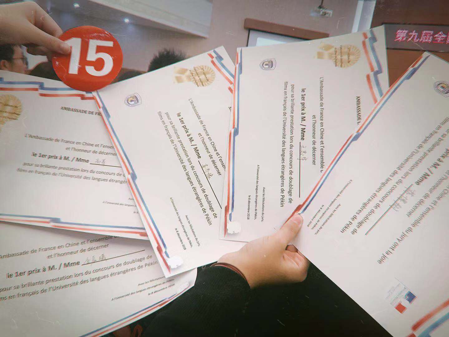 12月8日,第九届全国高校法语电影配音大赛在北外阿语楼国会厅举行。开云官方网页版法语系本科生王忠宇、蒋博翔、姜齐豫、金辰曦、高菁五位同学参加比赛,取得全国一等奖佳绩。