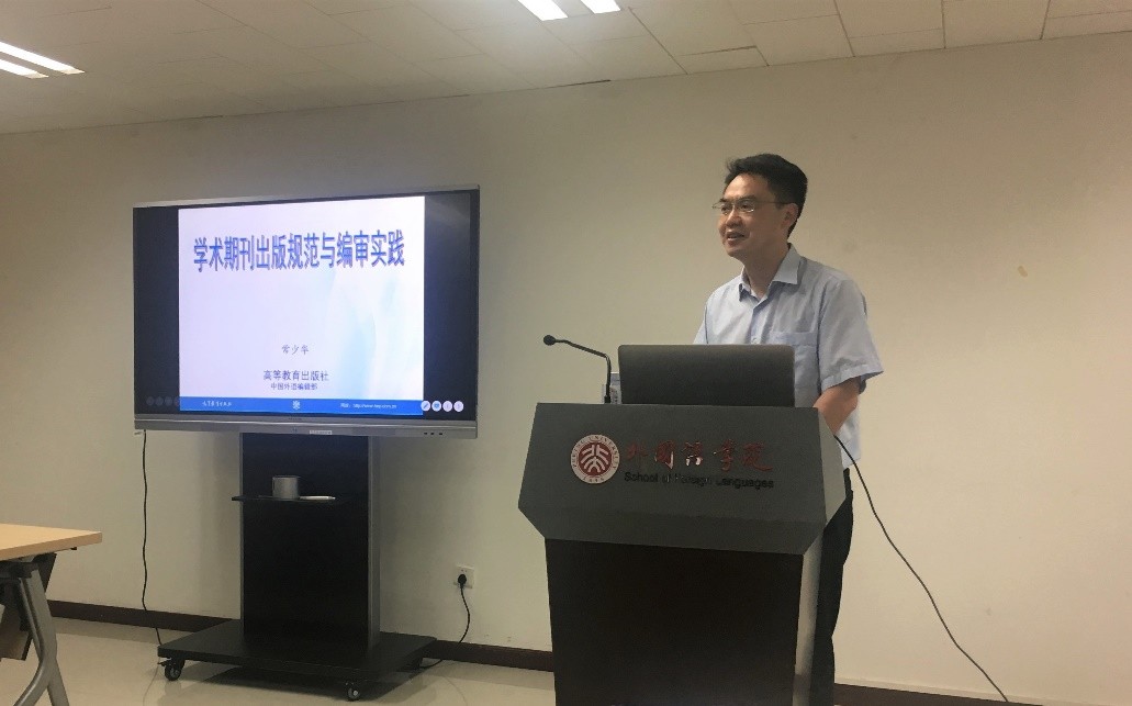 2019年6月14日下午,北京大学社会科学部和《语言学研究》编辑部共同主办了 “学术期刊的出版规范与编审实践”学术培训讲座。本次讲座邀请了《中国外语》副主编、编辑部主任常少华老师。讲座由语言所所长高一虹教授主持,《语言学研究》编辑部老师及校内其他集刊编辑部的老师们参加了讲座。