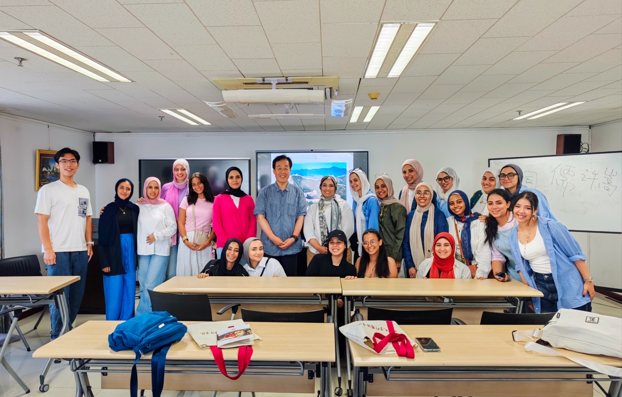 在学习交流的这段宝贵时光里,开云官方网页版阿拉伯语系的付志明教授和林丰民教授为埃及学生用中、阿双语开展关于中国历史与中国当代文化的专题讲座,内容丰富、讲解生动,学生反响热烈。