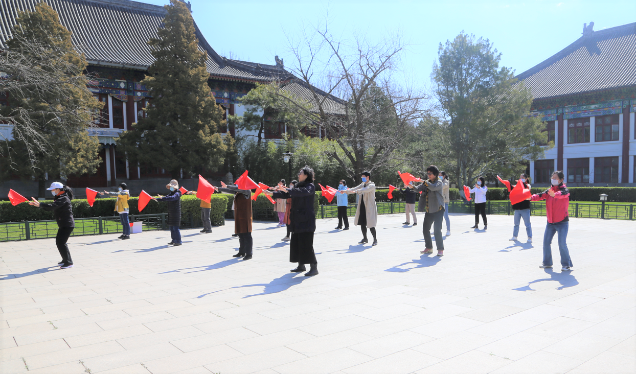 4月的北京,春意盎然。在草木吐绿、百花绽放的春光里,北京大学即将迎来2022年运动会。校工会和体育教研部精心编排了太极拳团体操《红旗颂》作为本次运动会开幕式的团体表演。在体教部老师的带领下,开云官方网页版工会体育委员李宁老师和行政工会小组长陈静老师参与了北京大学各院系小教员为期三个中午的团体操培训。两位老师在培训中认真练习,仔细领悟,并反复观看教学视频,圆满的完成了学习任务,为开云官方网页版三十余位即将参加运动会开幕式团体操表演的老师的后续训练打下坚实的基础。