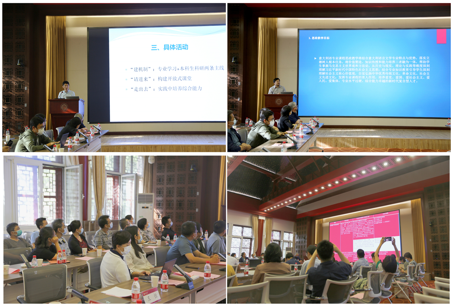 随后,专业代表、阿语系助理教授李海鹏和意大利语教研室负责人成沫分别介绍了课程思政建设的经验方法以及专业课程思政教学指南编写的思路方向。与会人员就下一阶段工作重点进行交流。