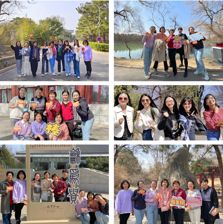 老师们沿着一体、朗润园、鸣鹤园、校史馆的路线前进并打卡留念,一路欢声笑语,共同度过了轻松愉快、意义非凡的节日。此次活动不仅使教职工的身体得到锻炼,心灵得到放松,还增进了同事之间的了解,促进了业务之间的交流,彰显了我院女教职工团结互助、和谐友爱、昂扬向上的靓丽风采。