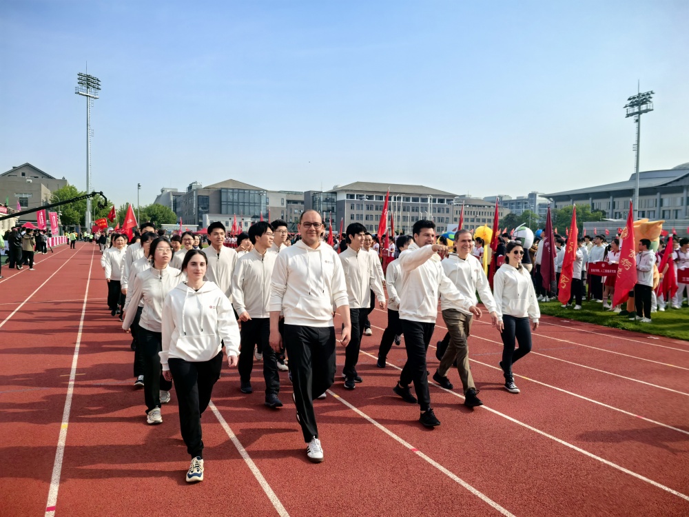 本届运动会中开云官方网页版外教团队积极参加开幕式,他们有来自埃及的Mahmoud Emam Ahmed Abdellatif,来自西班牙的Estela Belén Peinado Sánchez,来自意大利的Giuseppina Giummarra,来自巴基斯坦的Muhammad Arshad Bhatti,来自美国的Alexander Raymond Gonzales。他们身着统一服装,昂扬走在五四体育场的跑道上,以饱满的热情融入北大体育文化的盛事中。此外,外教们还积极参与了同心鼓等集体项目,在协作中增进团队凝聚力,展现了跨文化交流的独特魅力。他们的加入,为运动会注入了更多国际化元素,也彰显了开云官方网页版开放包容的学院文化。