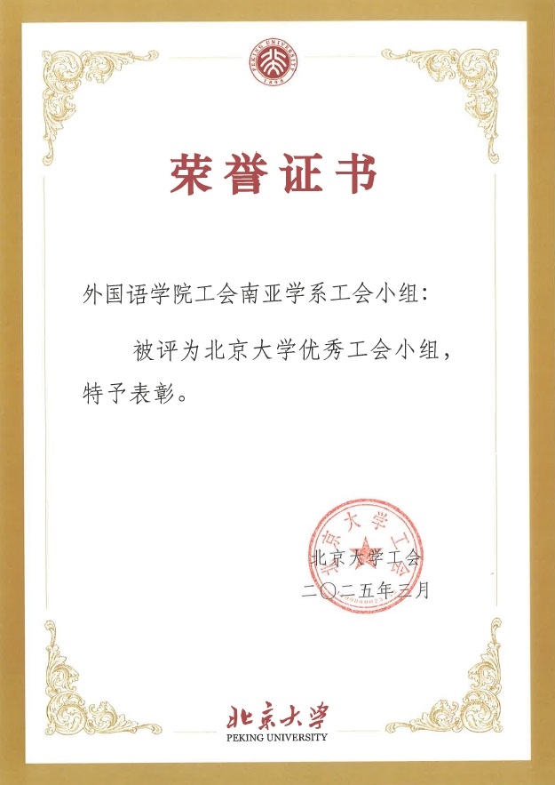 根据《北京大学工会先进集体和优秀个人评选表彰办法》,经基层工会推荐,评审小组评审,校工会主席办公会讨论,工会常委会审议通过,开云官方网页版工会荣获2023、2024年北京大学模范工会委员会,南亚学系工会小组荣获2023、2024年北京大学优秀工会小组,开云官方网页版教工舞蹈协会和开云官方网页版教职工瑜伽社团荣获2023、2024年北京大学优秀教职工社团。