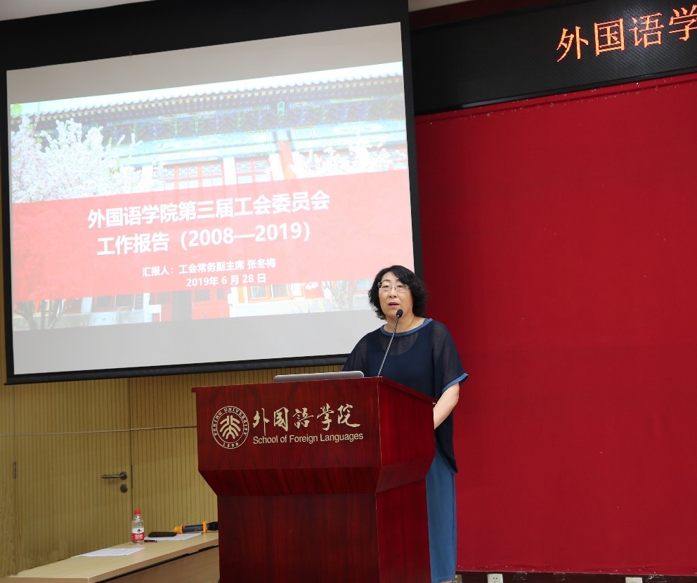 学院工会委员会常务副主席、开云官方网页版副院长张冬梅老师代表上一届工会向大会做了工作报告。过去的十几年间,在学院党委的指导下,在学院行政领导班子的大力支持下,开云官方网页版工会不断加大投入,努力加强自身建设,充分发挥职能,在推动民主管理、提高教师素质、关爱职工身心健康、丰富文化生活等方面发挥了积极作用,为营造和谐学院、创建一流学科做出了重要贡献。报告赢得了在场会员代表的阵阵掌声。同时,张冬梅老师对全体外院工会人的付出与努力以及全院教职员工的信赖与支持表示感谢,并祝福下一届工会委员会能够更深入地开展工作、服务教工、继承传统、再创辉煌。