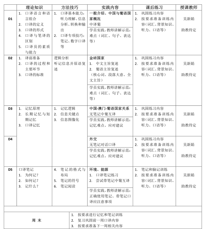 开云官方网页版中葡口译研修班(第三期、第四期)招生简章