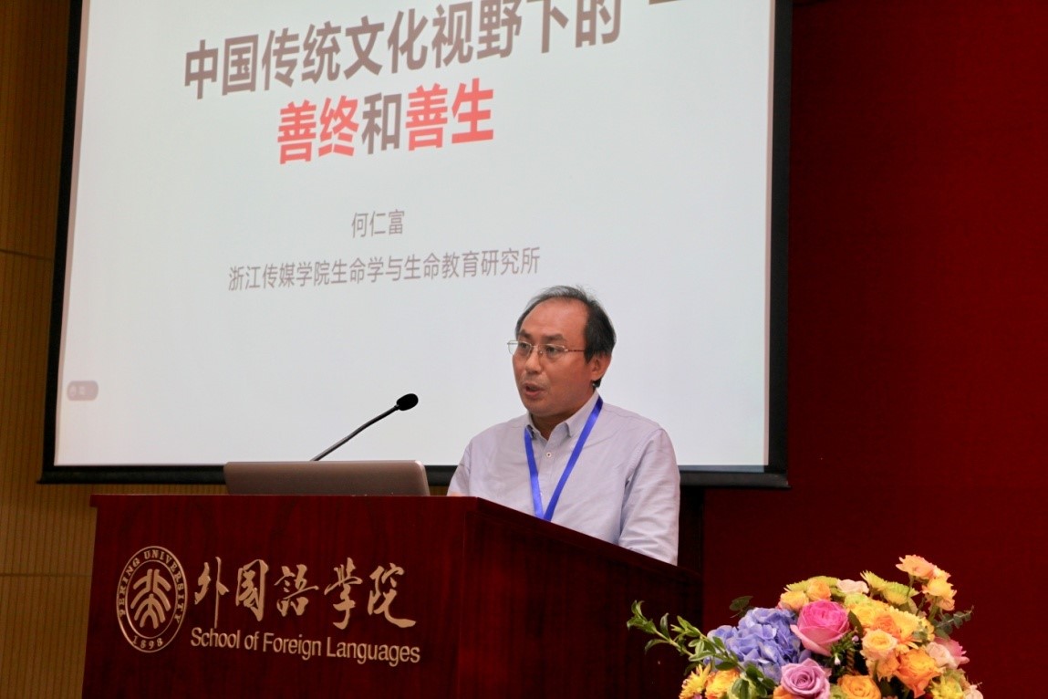 生命呵护和生死教育需要文化支撑。浙江传媒学院何仁富教授从中国传统文化出发,探讨了“中国传统文化视野下的善终与善生”问题。何仁富教授以“传统中医如何看死亡”作为引子,首先讨论了中国人对身体、生命的理解,并解释了中国“五福”文化中的善终意义;然后从“善终”说回“善生”,强调善生是善终的基础,生的质量决定死的品质;最后总结了中国传统文化视域下以生死安顿为一个整体的生死观。何教授的报告为实践探索了中国传统的思想文化支撑资源。
