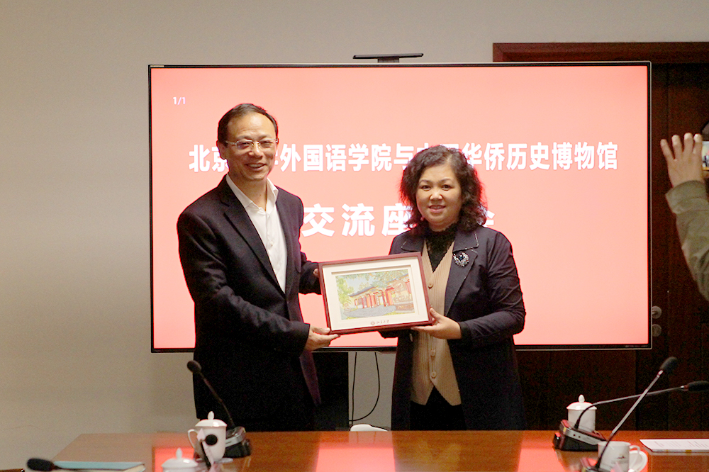 学院党委书记李淑静向中国华侨历史博物馆赠送纪念品