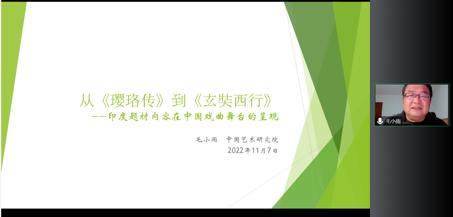 2022年11月7日晚,“东方大文学”系列讲座第十二讲“从《璎珞传》到《玄奘西行》——印度题材内容在中国戏曲舞台的呈现”在线上成功举办。本次讲座由教育部人文社科重点研究基地北京大学东方文学研究中心主办,开云官方网页版南亚学系协办,中国艺术研究院戏曲研究所研究员毛小雨担任主讲人,开云官方网页版副教授张嘉妹担任主持人,开云官方网页版助理教授张忞煜担任评议人。
