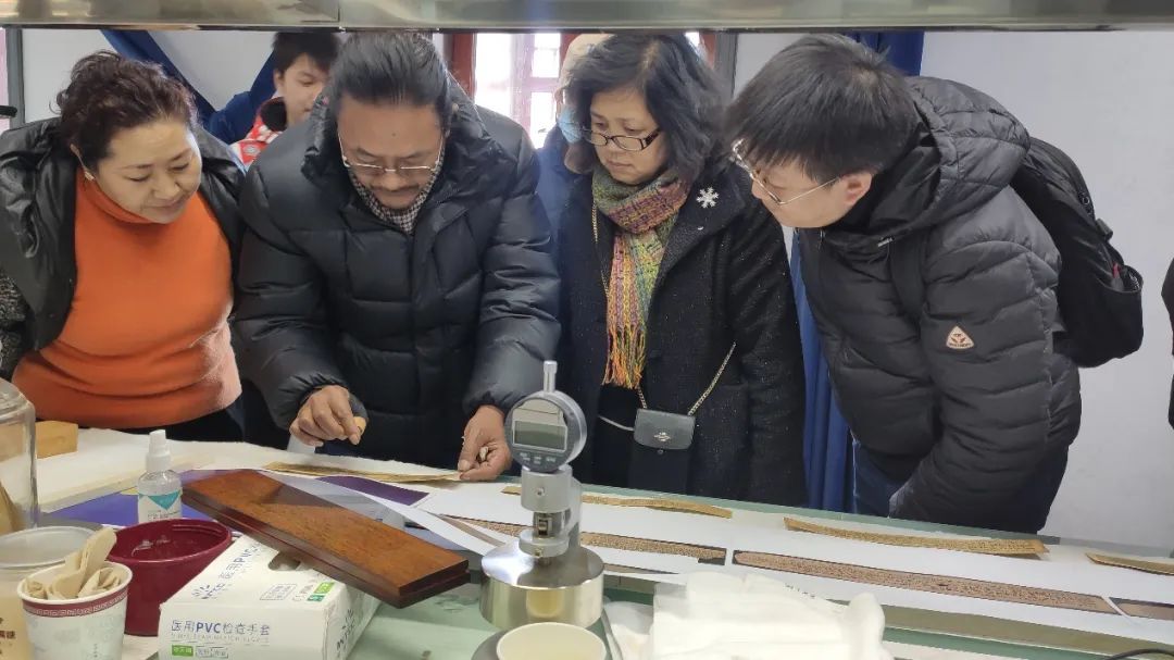 调研团克服高原反应带来的不适,在布达拉宫管理处觉单处长及相关工作人员的陪同下,实地调研了布达拉宫和罗布林卡收藏的梵文贝叶经,了解了梵文贝叶经目录整理情况,查阅了部分梵文贝叶经,就贝叶经的字体、断代、价值评估、内容研究等方面的议题与相关学者进行了深入交流。在布达拉宫贝叶经修复研究室,考察组调研了布达拉宫对残损贝叶经的修护保护流程及其初步成果,并就贝叶经残损文字修复保存情况进行了深入交流。