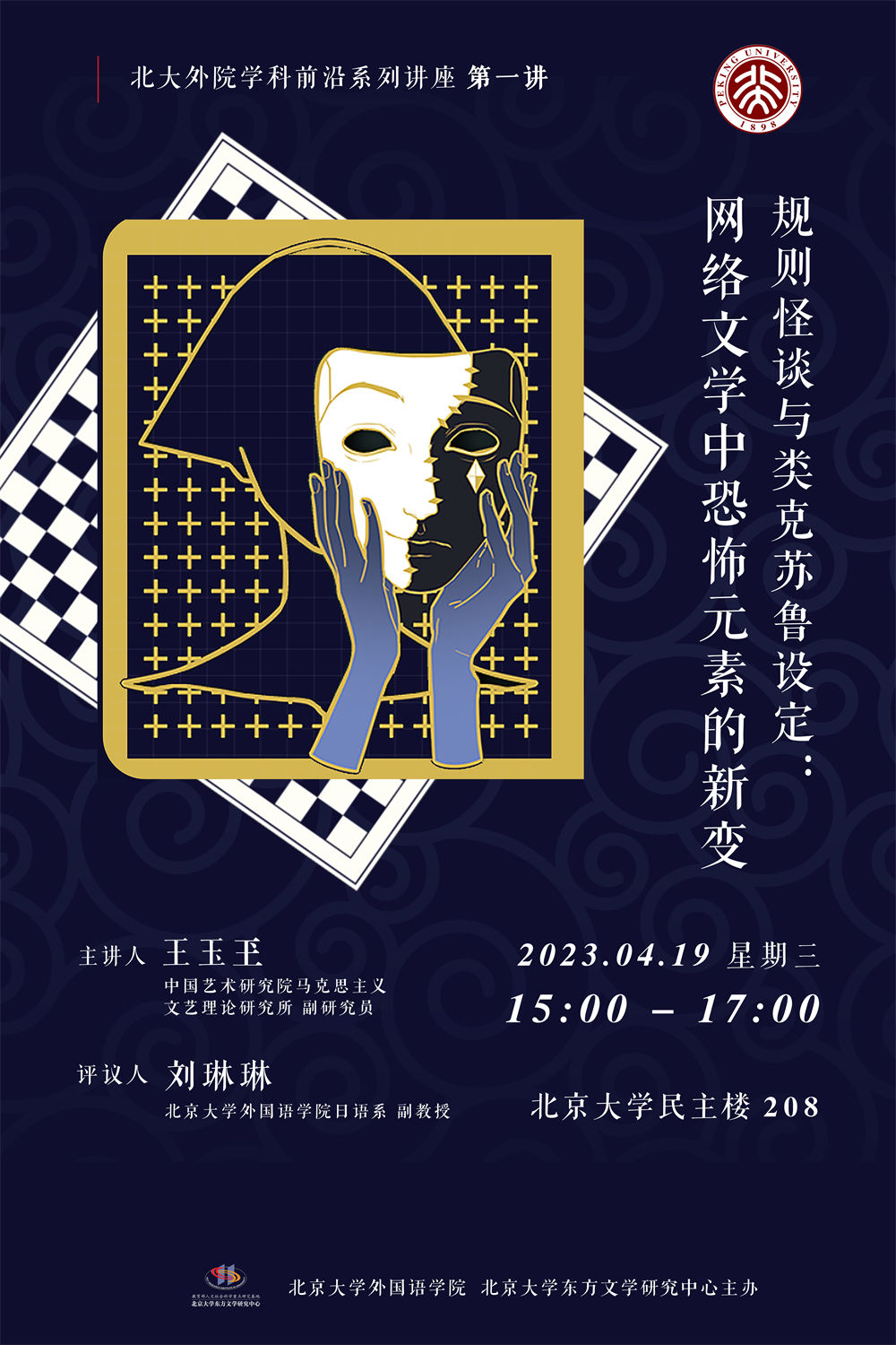 2023年4月19日15:00-17:00,开云官方网页版“学科前沿”系列讲座第一讲“规则怪谈中的文体反讽与理性退行”在民主楼208成功举办。本系列讲座由开云官方网页版、教育部人文社科重点研究基地北京大学东方文学研究中心联合主办。首场讲座由中国艺术研究院马克思主义文艺理论研究所王玉玊副研究员主讲,开云官方网页版日语系刘琳琳副教授担任评议人,并由开云官方网页版副院长吴杰伟教授担任开场嘉宾。