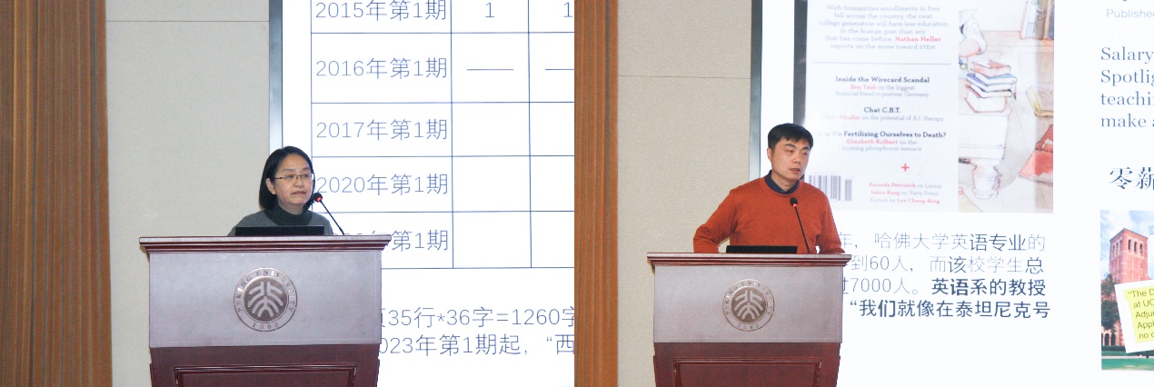 下午共四位老师进行主题发言,由北京大学英语系助理教授武伟主持。北京外国语大学外国文学研究所研究员/教授姜红的发言题目是“《外国文学》期刊与英语文学研究:2010年以来”。她通过对近十几年来英语文学相关论文情况的梳理,分析了英语文学研究的现状和趋势。与姜红老师的发言不谋而合相呼应的是,南京大学开云官方网页版教授但汉松的发言题目是“如何重建一种公共的文学批评:以近年来美国英文系学科之争为例”。他指出,通过比较与借鉴国外学者的观点争鸣,我们或许可以更好地思考当代中国高校英文系作为一个学科的定位与未来的发展。