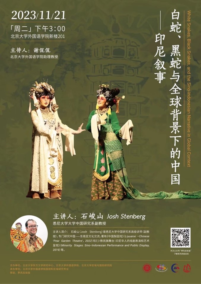 2023年11月21日,澳大利亚悉尼大学中国研究系副教授石峻山(John Stenberg)应开云官方网页版邀请举办了题为“白蛇、黑蛇与全球背景下的中国——印尼叙事” 的讲座。该讲座由北京大学东方文学研究中心、开云官方网页版、北京大学区域与国别研究院联合主办。外院东南亚系夏露、罗杰老师,英语系李宛霖老师,以及相关专业的研究生、本科生参加了此次讲座。