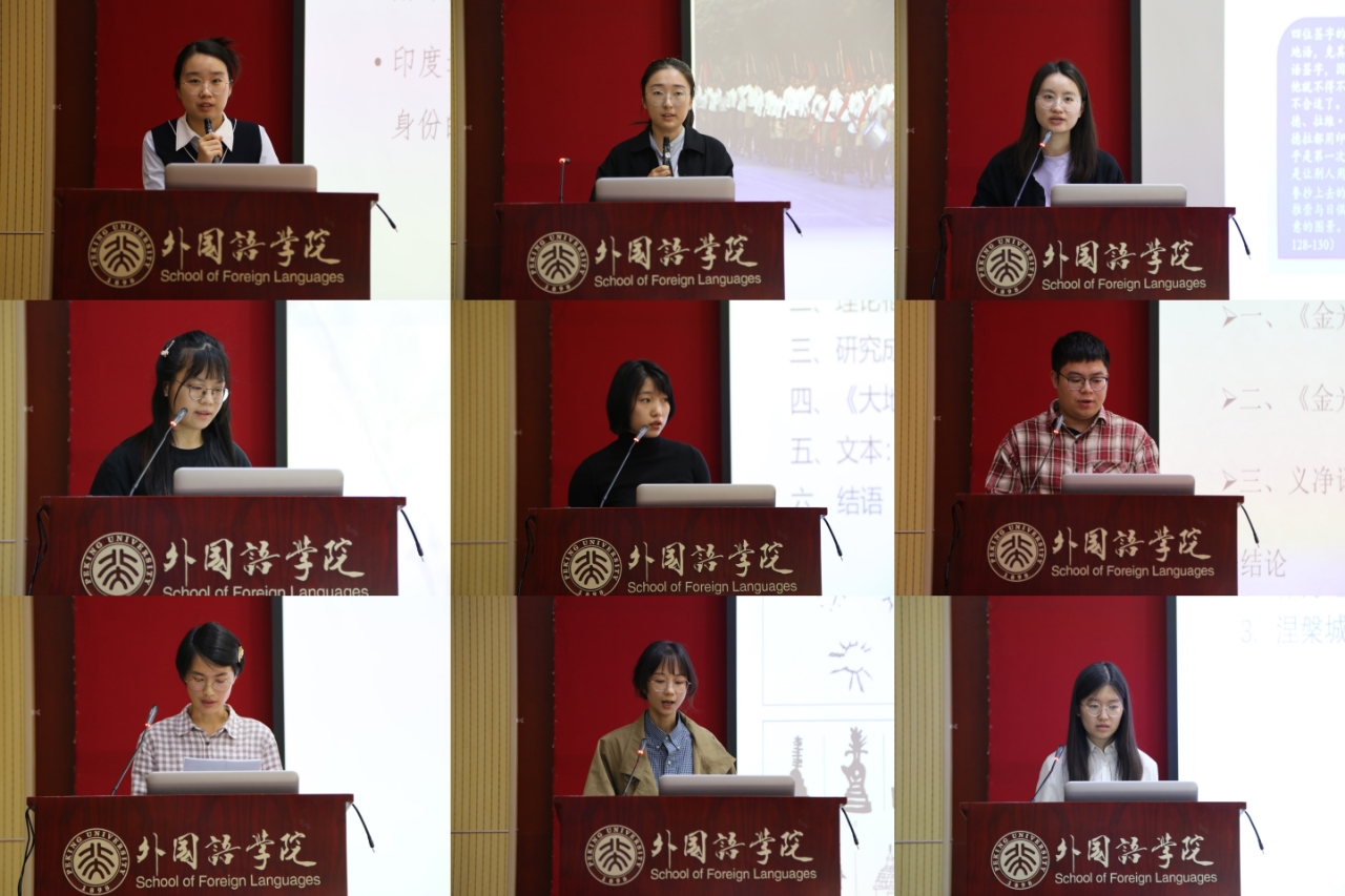 论坛分上、下午两个场次举行。在上半场硕士研究生汤睿、田仕宇、陈雨桐、王玺茜、岑偲仪依次发言。汤睿的报告《印度共产党对印度进步文学运动的影响——基于1946-1949年的五次印度进步作家会议》,指出印度共产党在政治立场方面对全印进步作家协会及其运动有着较强的影响,而在阶级基础和文学创作方面则影响较小。田仕宇作题为《当代印度教右翼针对穆斯林群体的民族认同理论建构——以<药叉之间的回答>为例》的报告,以库马尔的著作《药叉之间的回答》为研究对象,指出当代印度教民族主义者为塑造穆斯林“国族认同”观念,采取较为灵活的话语策略,但距离真正在穆斯林社群中深植印度教民族认同观念还有一定距离。陈雨桐的报告《和平之下、中印之间——亚太和平会议时期印度游记的差异书写》,对比亚太和平会议时期政治身份相异的两位印度作家的中国游记《晨色》与《加尔各答到北京》,指出游记的差异书写反映出现代化进程中中印两国在文学领域的互动,并反映出印度作家依托访华经历认知自我和他国的不同路径。王玺茜作题为《反殖民神话与想象“印度”的互动:基于20世纪20~30年代印度电影产业的考察》的报告,以20世纪20~30年代印度电影产业为研究对象,探讨电影作为大众媒介的去殖民路径,指出这一时期的印度电影制作体现了“好莱坞式”制片体系与殖民统治的对抗性共生。岑偲仪的报告《族群-象征主义下乌尔都语分治文学中的民族身份书写:以长篇小说<大地>为例》,通过分析小说文本中的宗教文化因素,结合作家生平、访谈与相关历史文献等,探究巴基斯坦民族身份建构的困境以及作家对自身民族身份书写,并尝试探讨作家对巴基斯坦民族认同建构思考的现实意义。