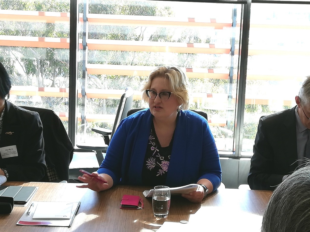 悉尼大学校长迈克尔•斯宾塞博士(Michael Spence)在论坛期间接见了北京大学的部分代表,并就两校合作与中澳两国共同关注的问题进行了讨论。论坛的全体代表会议由汉斯•亨德瑞斯克教授与刘树森教授共同主持,悉尼大学负责全球合作事务的副校长凯撒琳•毕拉芙教授参加论坛,并在开幕式上发表致辞,祝贺论坛开幕,并总结了2018年第一届对话论坛以来所取得的合作成绩,以及本届论坛将涉及的重点合作领域与项目,期待两校的与会代表深度商讨,取得预期的成果。