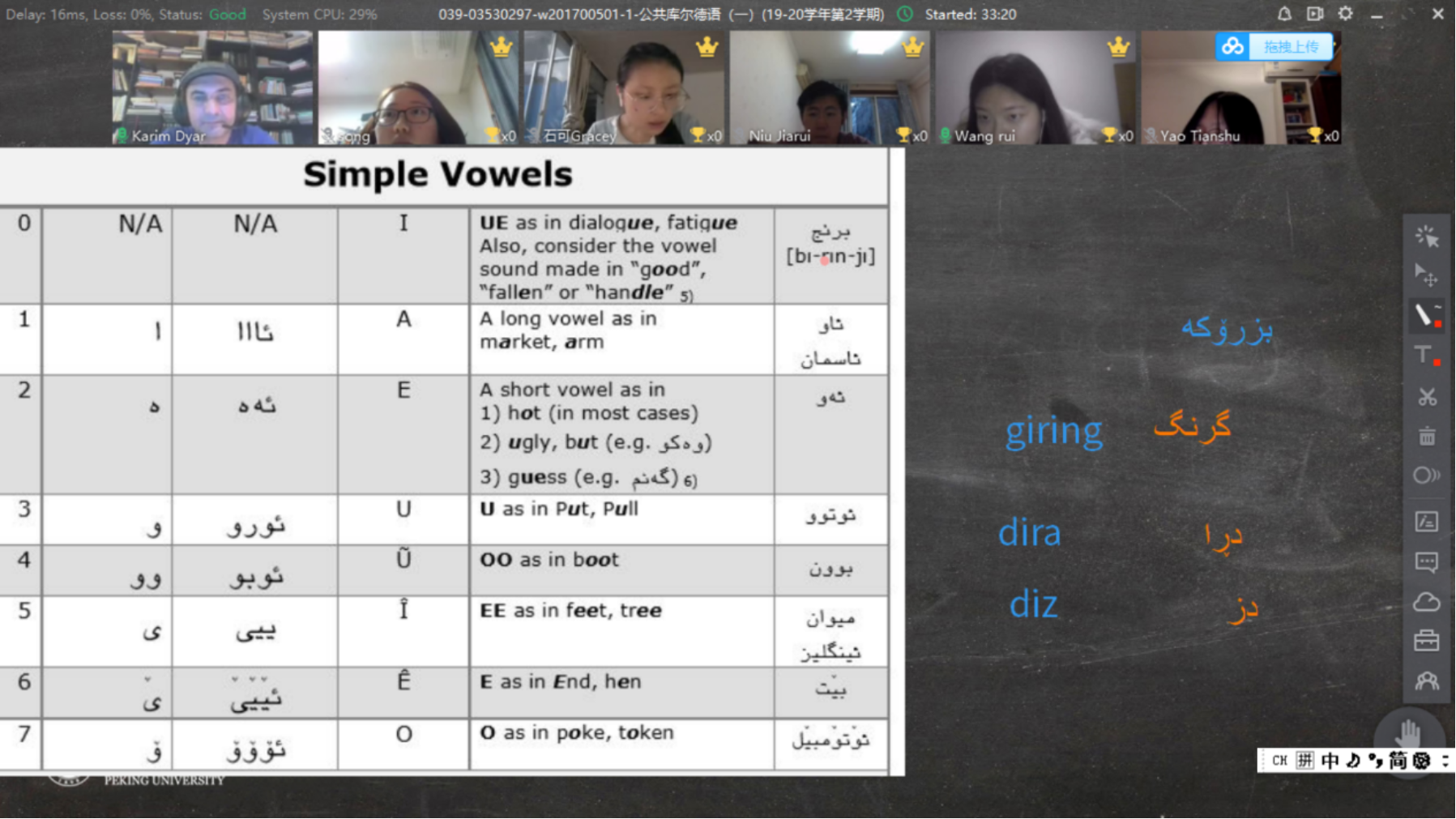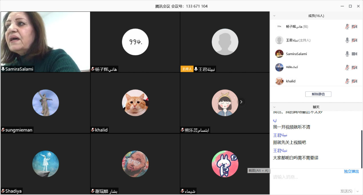 线上“云“课堂无疑是一种新的挑战和体验。令人欣慰的是,经过几个星期的实践磨合,赛米拉等4位外籍教师和北大选课的同学们已经逐渐熟悉并适应了线上教学的方式,虽然偶尔会有诸如网络不佳的问题,但是几位外籍老师都能在助教们的协助下迅速调整,从容应对。暗黑的疫情挡不住知识的光芒,哪怕中东地区一支蜡烛微弱的光芒也能穿透遥远的时空,照进北大燕园学子在各自家中的书桌。