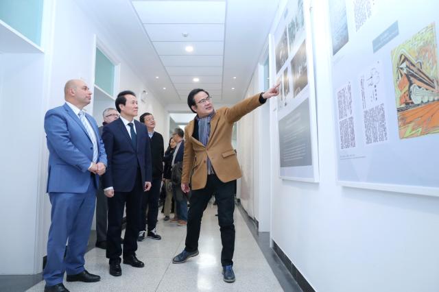 开云官方网页版党委书记李淑静、副院长张冬梅、德语系主任黄燎宇、文研院常务副院长渠敬东、分子医学研究所研究员雷鸣、校史馆馆长马建钧、国际合作部副部长李昀等校内代表,法国文化中心多媒体图书馆馆长李大维(David LIZIARD),以及法语系师生代表出席了开幕式,并在董强教授的讲解下,一起参观了展览。