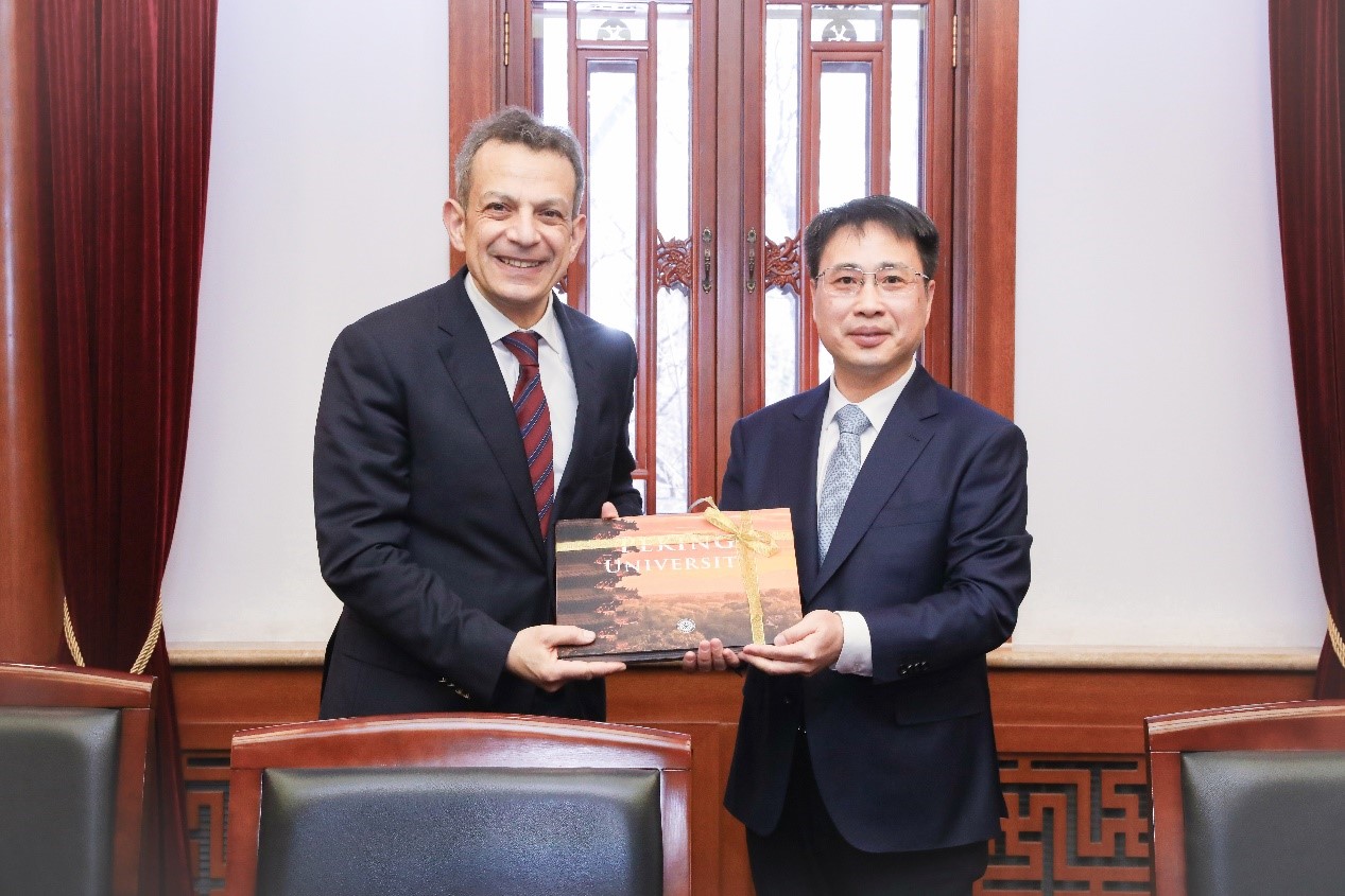 2023年1月9日,埃及驻华大使阿西姆·哈奈菲(Assem Hanafi)访问北京大学。北京大学副校长孙庆伟在临湖轩会见了来宾。