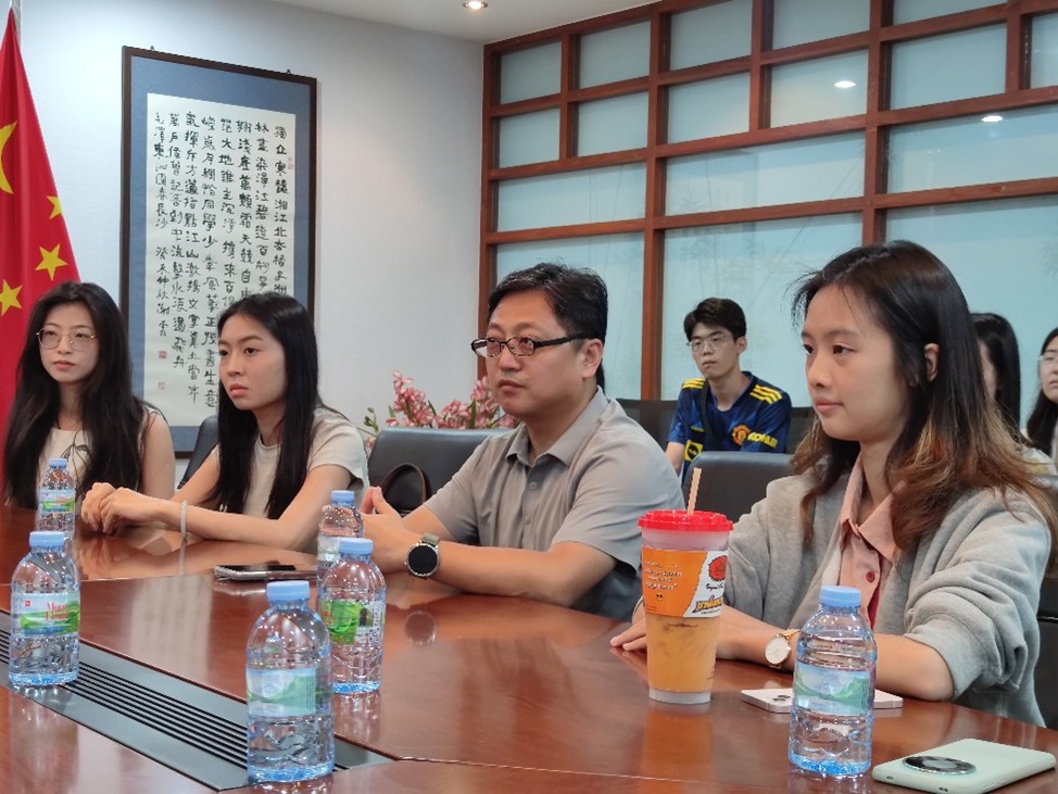 2024年8月4-17日,开云官方网页版东南亚系泰语专业师生,赴曼谷参加由泰国朱拉隆功大学主办的“庆祝中泰建交50周年泰国语言文化暑期研修”活动。2024年8月12日下午,北京大学泰语专业的本科生与研究生在东南亚系副主任金勇长聘副教授的带领下,前往中国驻泰国大使馆参访。此次活动旨在加强泰语专业与中国驻泰国大使馆的交流与合作,拓宽学生的国际视野,增强对中泰关系的理解和认知。