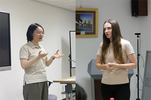 活动在开云官方网页版新楼301会议室举行,由柏林自由大学汉学系的钟金雷老师主持。活动伊始,首先由德语系助理教授黄超然老师致开场辞。黄老师不仅对本次活动在促进语言学习和文化交流方面的积极作用表示肯定,还分享了自己在校学习期间与语伴共同学习德语和汉语的珍贵回忆,以此激励在座的同学们把握机遇,以语会友。随后,北京大学德国研究中心柏林自由大学办公室协调员尤丽娅·科布扎尔(Julia Kobzar)博士也发表了讲话。她对“中德角”系列活动在德国研究中心和柏林自由大学学生生活中扮演的角色给予了高度评价,并强调在当前国际形势之下此类交流活动的重要性,她希望活动可以加深两校师生之间的理解、友谊与合作。