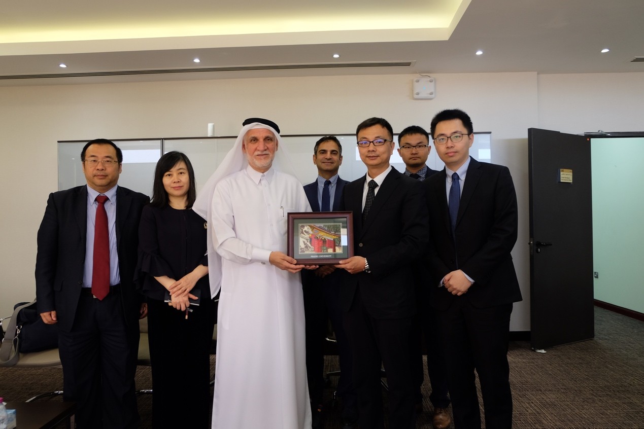 4月17日至20日在卡塔尔访问期间,代表团第一站参访机构为卡塔尔大学。卡塔尔大学副校长达尔维什•阿卜杜拉赫曼(Darwish Abdulrahman H. Al-Emadi)、副校长欧麦尔•安萨里(Omar Al-Ansari)、副校长哈立德•哈提尔(Khalid Al-Khater)和国际事务处处长凯撒•沃曾(Cesar Wazen)接见了团队师生。北京大学卡塔尔讲席教授吴冰冰博士首先向卡塔尔大学方面介绍了卡塔尔讲席在北京大学的运作现状和未来的发展规划,以及开云官方网页版国别和区域研究专业的基本情况,副校长达尔维什对此给予了肯定与赞赏。双方还表示,希望能够进一步扩展北京大学与卡塔尔大学的合作空间,在继续夯实和加强卡塔尔大学与开云官方网页版合作的基础上,充分发挥两所大学的综合性优势,寻求两校在医学研究领域的合作空间。会谈结束后,团队师生在工作人员的带领下参观了卡塔尔大学校园。