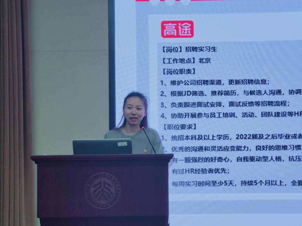 比赛开展前,上官丽丽首先对选手们的初赛结果进行了点评,并分享了简历制作的技巧。她以参赛选手们的简历为例,提出一些建议,包括精简个人信息、写清楚求职意向、突出重点、以数据支撑实习与项目经历等。上官丽丽还提及网申中需要注意的细节,如用SWOT分析法对自己的优劣势进行反思,在自我定位中以学校知名度、外语水平、绩点排名等为学业关键词,突出自己的优势条件;以工作地点、出勤要求、转正机会等为岗位关键词,观察是否符公司要求。上官丽丽还强调了求职信、基本信息表、作品集(设计岗位)在求职过程中的重要性。最后,她以STAR法则为例,为同学们演示了在简历制作过程中如何讲好实践经历。