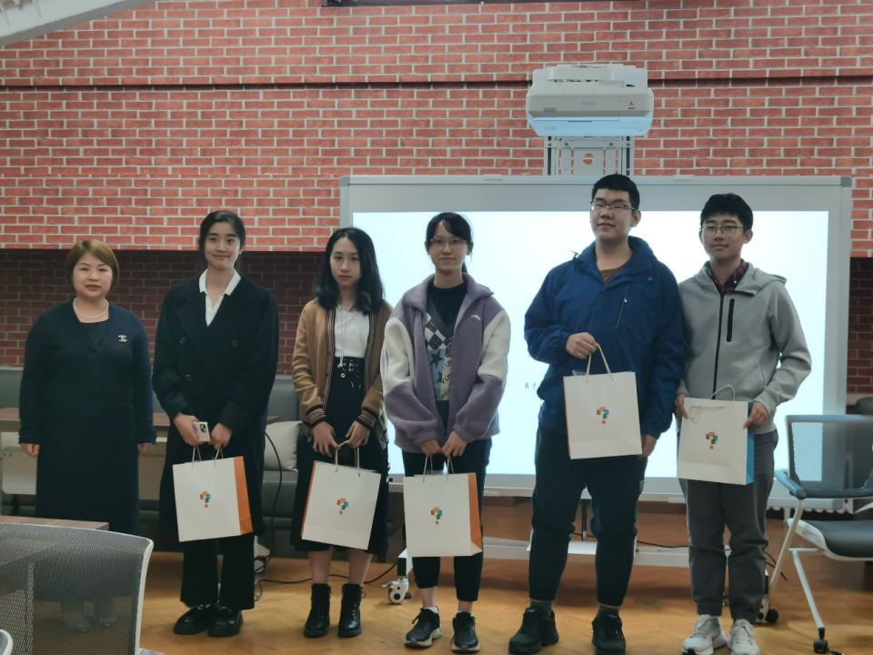 接下来,三组面试官共同选出五名在模拟面试中表现突出的同学作为本次模拟面试的优胜者,并为他们颁发了纪念品。