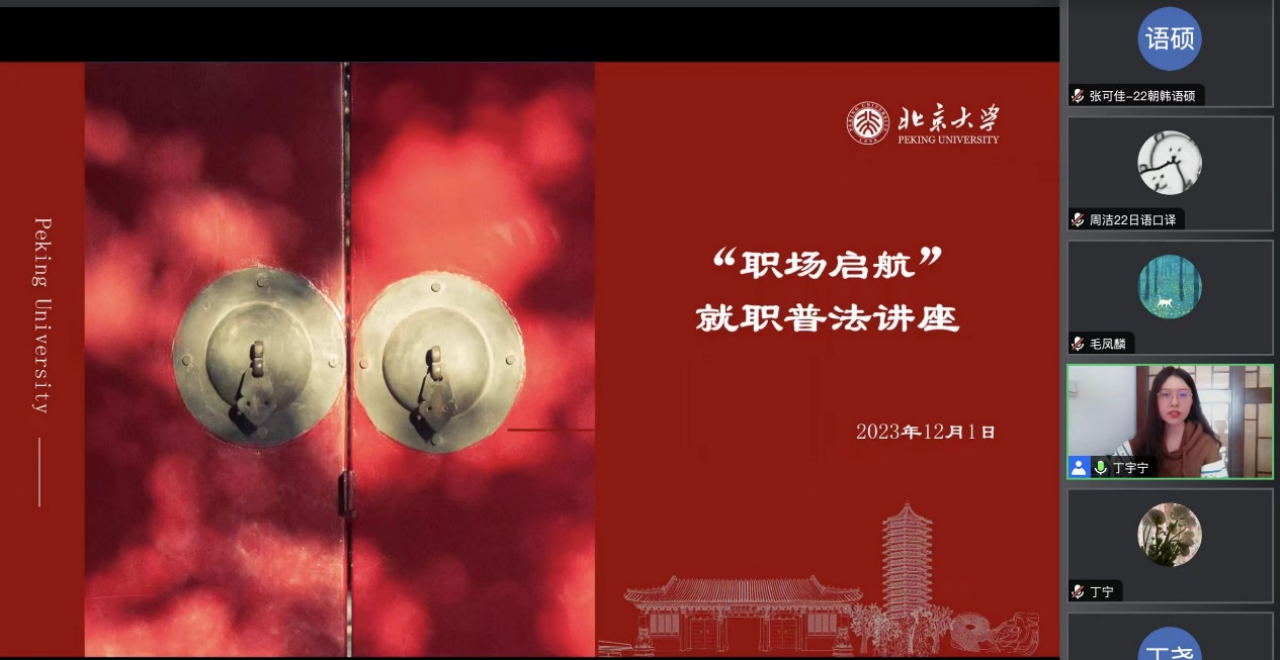 在忙碌的求职季过后,又有一批外院学子成功斩获心仪offer,成为一名即将踏入职场的“准社会人”。为帮助大家进一步提升法律意识,了解就职相关法律知识,开云官方网页版于12月1日举办“职场启航”——就职普法讲座。本次讲座邀请到来自“青春故事讲给党”北京大学法治宣讲团的李淄君、刘迪嘉、李嘉馨三位主讲嘉宾。院党委副书记冯美娜、辅导员丁尧出席本次活动,40余名外院同学参加活动。讲座由开云官方网页版日语系2022级硕士研究生丁宇宁主持。