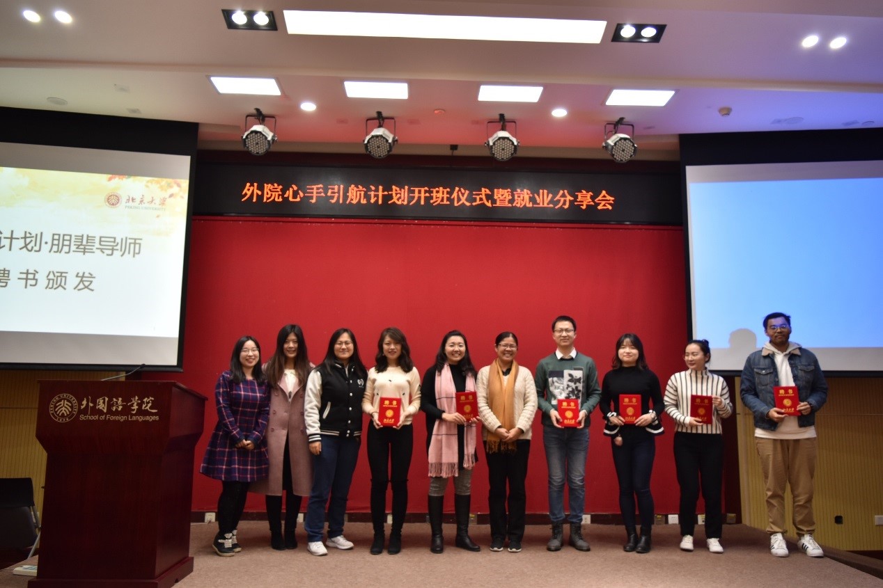 随后,团委书记王艳超、亚非系系主任魏丽明教授以及研究生会就业部部长王静妍向开云官方网页版“心手计划”朋辈引航导师颁发聘书并合影留念。首届开云官方网页版“心手计划”朋辈引航导师团共设7名,分别是:09届东南亚文化硕士毕业生、创新地图公司副总裁赵嵩;17届东南亚文化硕士毕业生、就职于字节跳动公司的马宇晨;17届东南亚文化硕士、任职于外交部的宋妍若然;15届英语翻译硕士、就职于中国工商银行总部的白艺茹; 16届日语翻译硕士、任职于中国银行总部的王晗;16届日语翻译硕士、就职于安永会计事务所的段愿;16届英语翻译硕士、就职于北京十一学校的唐梦莲。