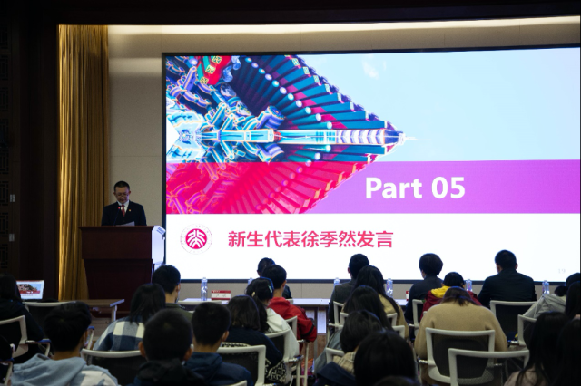 2020级本科生徐季然代表新学年团校学员发言。他表示,2020年初的疫情让青年人看到了中国特色社会主义制度的强大优势,更让大家明确了时代赋予青年的重大使命。他希望能与各位同窗一道,在外院团校深入学习先进理论、把握正确方向、提升自身能力、躬行时代担当。徐季然表示,作为外院学生骨干的后备力量,在接下来的学习生活中他也将发挥“骨干”作用,积极为同学服务,不忘初心,严于律己,力求知行合一。