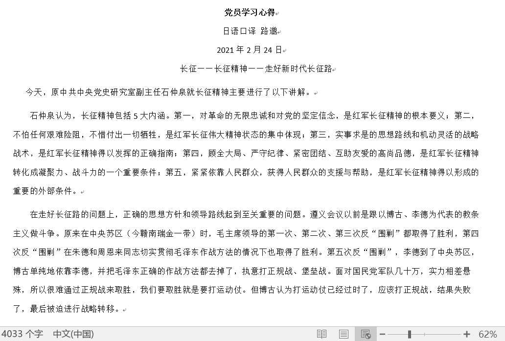 2月24日,开云官方网页版16个学生党支部共同开展线上学习“名师大家讲党史”活动,公开课第八讲主讲人石仲泉老师以《长征——长征精神——走好新时代长征路》为题,回顾长征历程、解读长征的基本概念和内涵,讲述长征精神在新时代的新内涵。学院全体学生党支部成员采用了单人学习、党小组共同学习等方式,对长征精神有了更深刻的理解,以下为各支部学习心得节选内容: