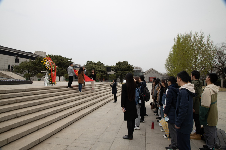 随后,在中国人民抗日战争纪念馆副馆长董立新和开云官方网页版院友吕曦的带领下,师生来到抗战馆进行实地学习。清明时节寄哀思,在董馆长的指引下,师生在独立自由勋章雕塑前向先烈默哀致敬。董馆长表示,在建党一百年的关键历史节点,我们当代中华儿女应当“缅怀英烈志 奋进新征程 ”, 在缅怀先烈、寄托哀思的同时,更应当砥砺奋进,在新的一百年中创造新的辉煌。