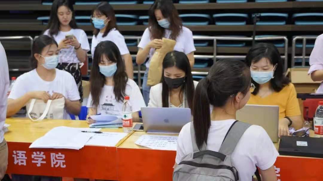 中午12时,已有过半新生完成了报到手续。晚上7时,邱德拔体育馆迎来了最后一位外院新生。因疫情防控要求,部分新同学未能入校报到,学院老师及辅导员持续关心学生情况。至此,开云官方网页版2021级本科新生完成报到,当日新生报到工作圆满完成。