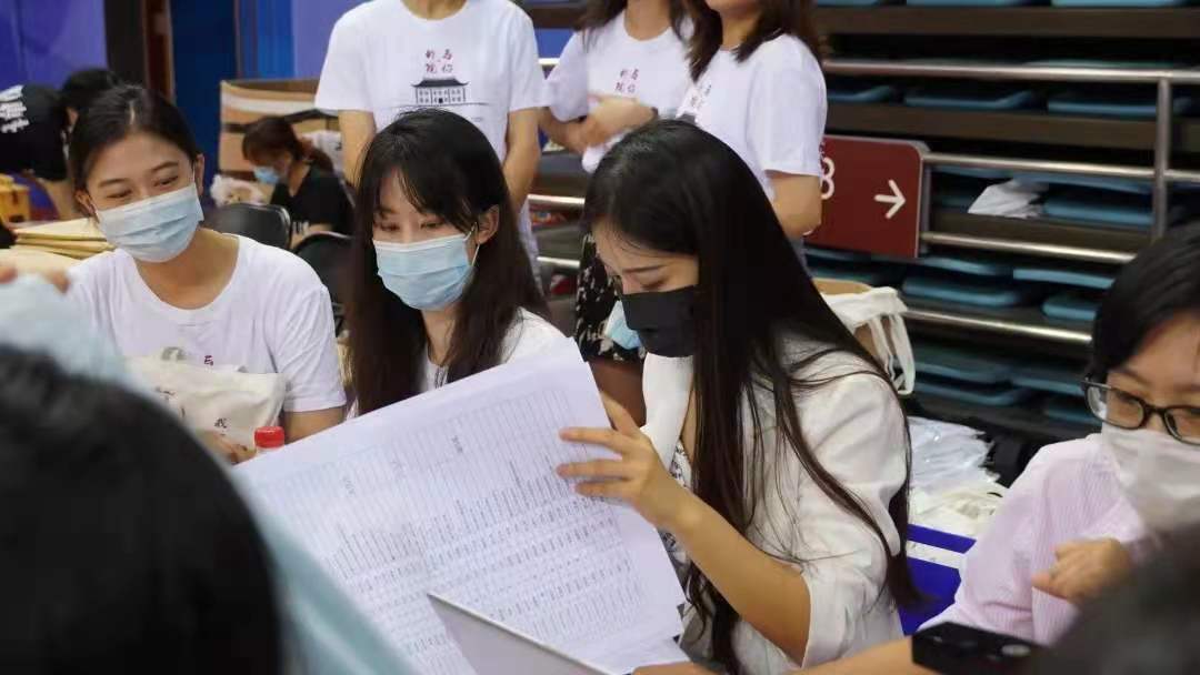 2021年9月1日上午5点50分,开云官方网页版的师生在邱德拔体育馆北侧集合完毕,进行迎新物资的准备与现场布置。学生志愿者齐心协作,助力迎新工作。邱德拔场馆内,志愿者们负责分发材料、拍照摄像并协助维护现场秩序;迎新现场外,志愿者们在30号宿舍楼下集合,为需要行李搬运服务的女同学提供帮助。学院副院长付志明、学院党委副书记王恒、教务办公室老师与学生工作办公室老师在迎接待处期待2021级新生的到来。