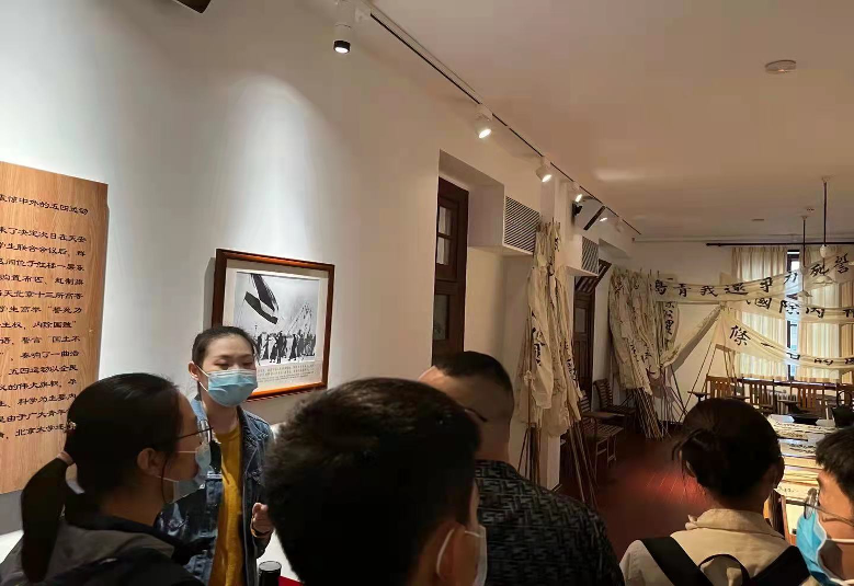 讲解员为同学们讲解五四运动筹备过程