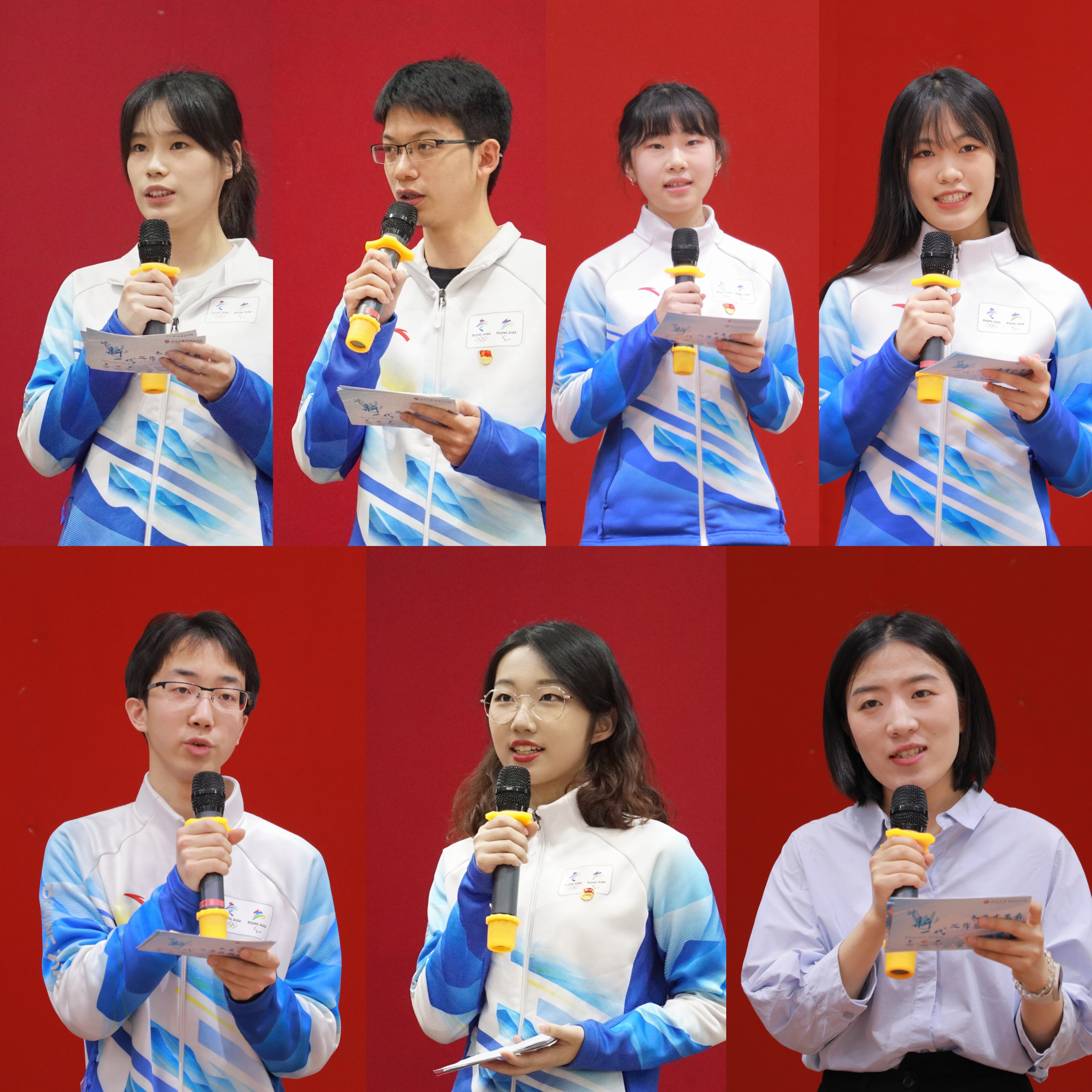 志愿者代表深情讲述了他们温暖而充满力量的冬奥故事。2020级阿拉伯语本科生陈佳琪讲到,正如残奥的纪念徽章上所写的“Change starts with sport”,运动是冬奥会的主题,是一切变化的开端,也意味着诸多珍贵的友谊;兴奋剂检查陪护工作的新奇感让2018级俄语本科生张浩然像经历了“一场冬梦”,感叹于冬奥拉近彼此距离的魔力;“宇宙不爆炸,VVC不放假”是2018级西班牙语本科生刘雨萱以及场馆通行中心志愿者的“坚守”, 一同在岗位上的记忆是VCC志愿者们心中最好的纪念;2019级俄语本科生刘筱琳以成为冬奥技术志愿者的经历述说“待定”并不意味着失去机会,有时坚持一下、等待一下,或许就会有好的结果;对于2020级乌尔都语本科生朱光宇来说,“温度”本意为“由冷及热”、“由寒转暖”,它不仅是志愿工作内容的变化,更是无数友谊、热爱、情感交织与深化的过程;“材料被传递着、信息被传递着、文化被传递着,于是爱也被传递着”,2020级德语本科生孙雨筠在奥运中目睹了文明的交流互鉴,也感受到了世界舞台上的中国力量;2020级英语翻译硕士生范若孜表示,一篇篇短小精悍的新闻稿件背后都凝结着外院“冬奥之声”翻译团队的汗水。北大外院师生在赛场内外默默支持,以拼搏和坚持,用“志愿蓝”擦亮了北京冬奥的“金名片”。