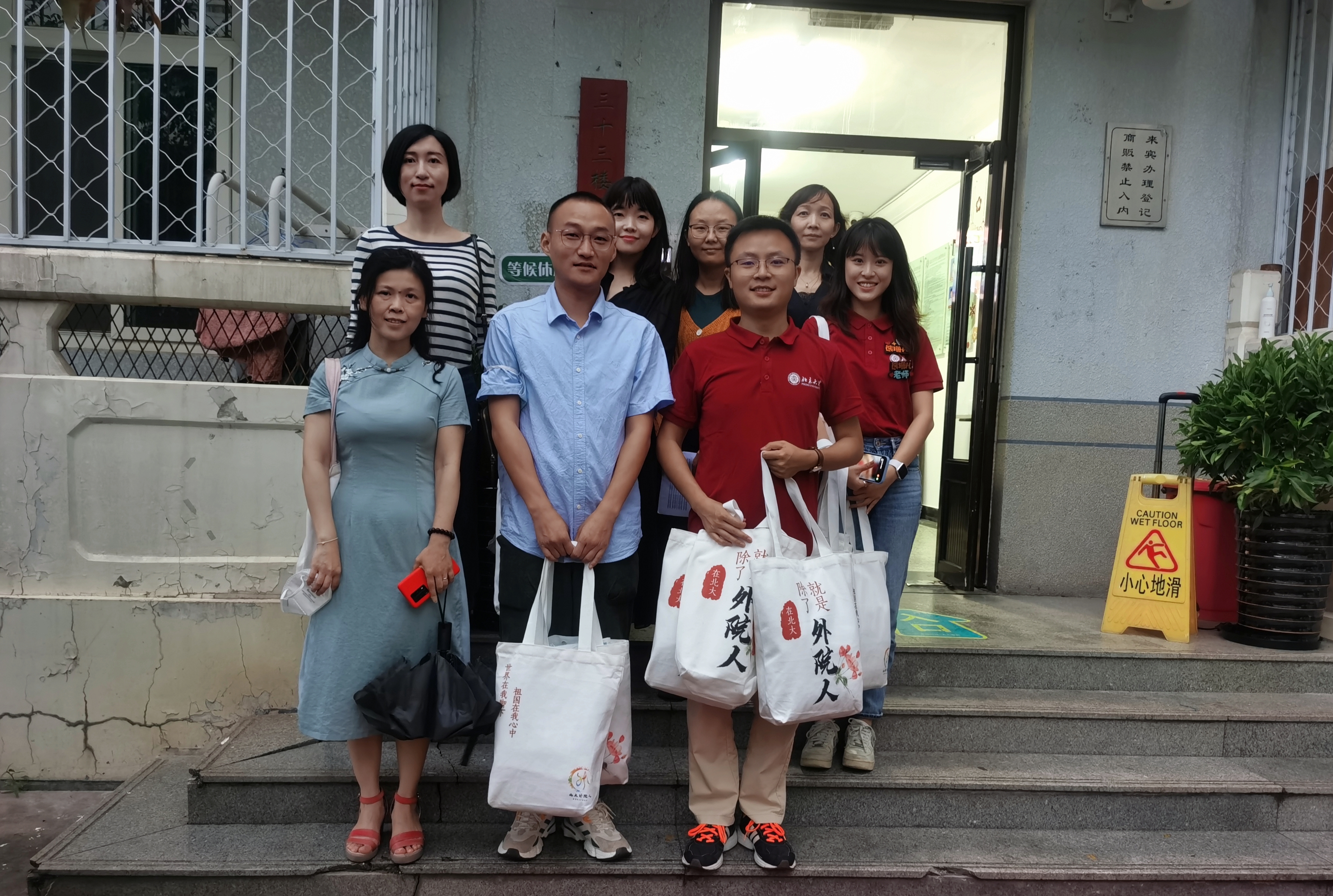 在为新入园的同学们准备的物料包中,包含有外院特色的院衫、特别定制的姓名牌、内容详实的本科生学生手册、即将陪伴新生度过校园生活的宿舍钥匙、校园卡等物品。它们被妥善安置在外院人精心设计的帆布包中,凝聚着外院师生对新生的关怀与祝福。