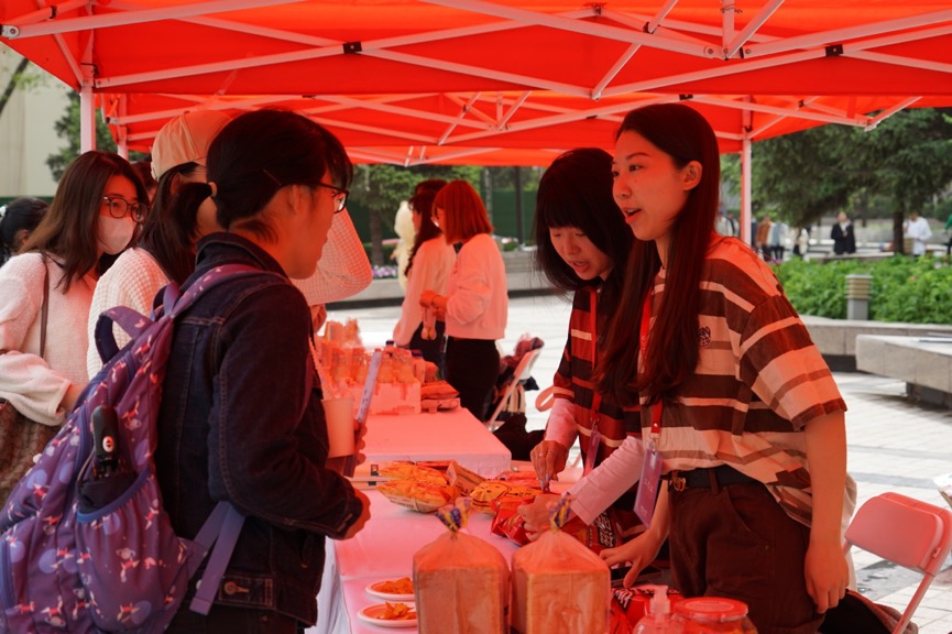 巳时燕园,沐浴着初夏温暖的阳光。颇具世界各地特色的美食摊位和游戏摊位。摊位分列百周年纪念讲堂南广场,来自校内外的数百名师生穿梭其中,现场热闹非凡。