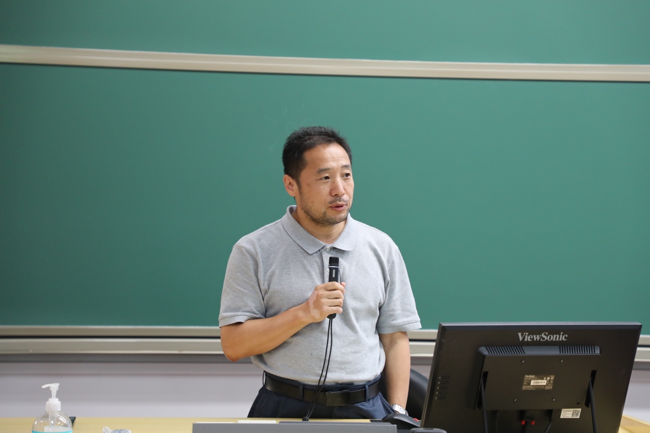 西葡语系助理教授成沫作为军训领队教师代表发言。他结合自己在意大利的学习和工作经历,表达了对军人坚守国防岗位的敬意,也强调了坚持开展军训活动和爱国主义教育的重要意义。