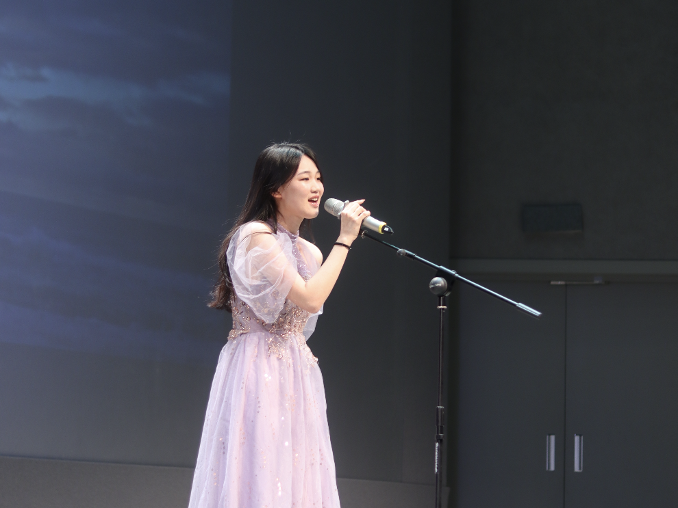 接下来,崔又文为大家带来了韩语歌曲《Love Wins All》,讲述着在某个灰色世界中,爱抵万难的故事。