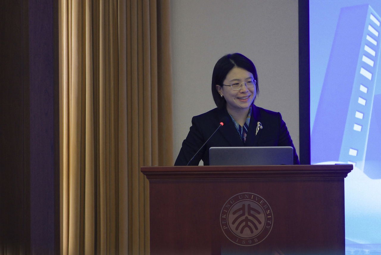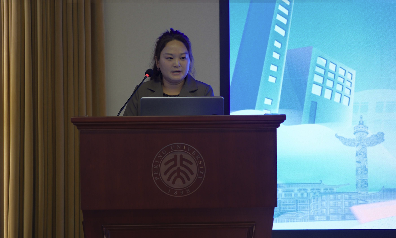 丰台区宛平街道党群办负责人李巧玲发言。李巧玲回顾了宛平街道与北京大学的深厚渊源,同时结合宛平街道正在建设的项目介绍了实习岗位的基本情况,鼓励北大学子积极报名,在基层建设中贡献自己的力量。